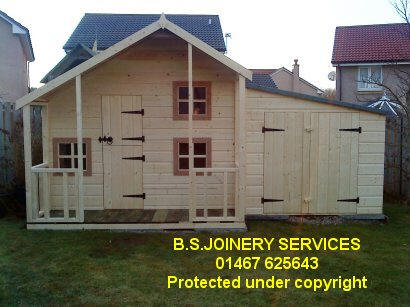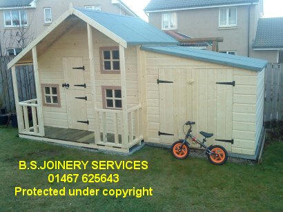 Both Economy and Deluxe Styles, can have a pent roof Toy Garage / Store attached as shown above